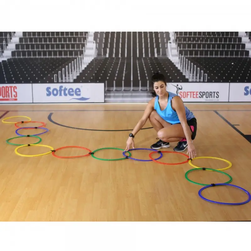 Ovaj set od 12 višebojnih obruča za agilnost omogućuje kreiranje različitih oblika krugova i poligona za trening brzine, ritma i koordinacije. Obruče je moguće spojiti čičak prstenovima, što omogućuje fleksibilnu postavu od 1 m do maksimalno 5,40 m duljine.